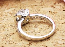 ご予算の兼ね合いもあって、お値段を下げるためにメレダイヤを使わないタイプでご検討いただきましたが、こちらのティファニータイプのデザインに目を奪われて、少し奮発をしてお選びいただきました。