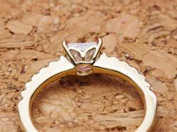 プリンセスカットに対応するセミオーダー枠(既成枠)は少ないのですが、サイズによってはラウンド枠の台座(石を乗せる部分)を改作することで対応が可能です。