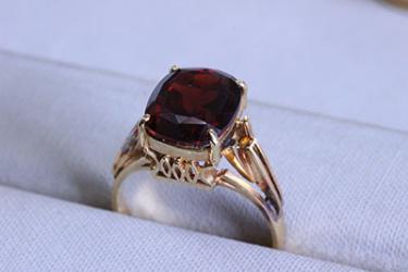 義母から譲り受けたガーネットの指輪。