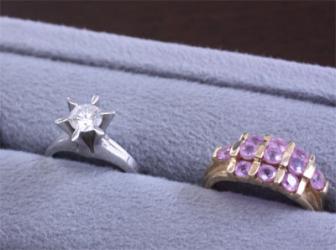 結納でもらった立爪の指輪、そして普段使い用のピンクサファイア。