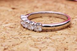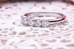 ダイヤモンドを横に5石並べるデザインは定番で今も人気です。