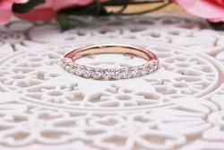 ただ、コストがかなりかかるので、メレダイヤだけを使ってハーフエタニティーリングをおつくりすることをおススメさせていただきました。
