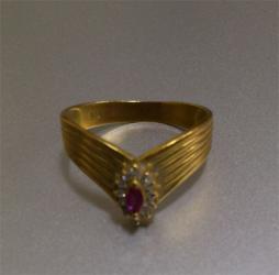 マーキースカットのルビーを男性が使いやすい平打ちの指輪にセッティングさせていただきました。