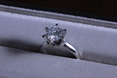 1.3カラットのダイヤモンドの立て爪の指輪。