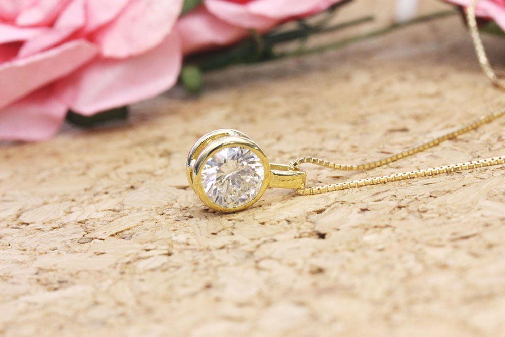 フクリンタイプはトップとチェーンを直結させるデザインが多いですが、ダイヤモンドも大きいこともありバランスの良い、フクリンタイプの枠にチェーンを通すバチカンがついたデザインをおススメさせていただきました。