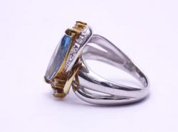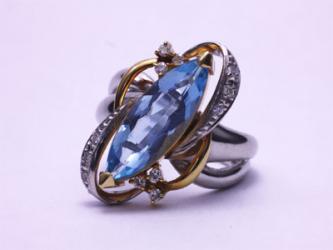 プラチナと18金のコンビの地金にアクアマリンが留められた