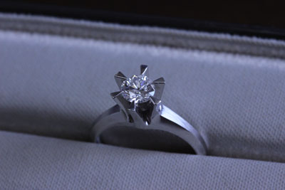 お母さまから譲り受けた立て爪デザインのダイヤモンドの指輪。