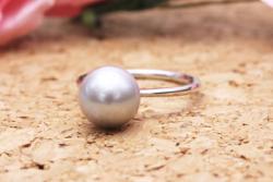 [1628] グレーの真珠を指輪にしてお姉さんにサプライズプレゼント