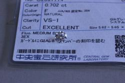 鑑定書のついた高品質のダイヤモンドのルース。