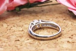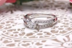 他のデザインを色々と迷いながらも、最終的に、ダイヤの輝きを引き立たせることができそうな両サイドにメレダイヤを配置したこちらのデザインを。