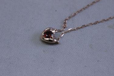 かなり小さなサイズのガーネットの石だったので、既成のデザイン枠もほとんどなく・・・。
