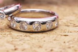 ダイヤ6pc全てを使う選択肢もありましたが、お客様のご希望で、1pcはピンキーリングを作りたいとのこと、こちらは既成のデザイン枠を使ってシンプルデザインのピンキーリングを作らせていただきました。