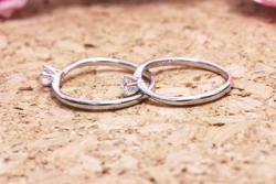 ご来店いただいた次女さんは、ご自身の希望で、プラチナの細身のデザインリングに。長女さんはご不在だったものの、指輪をご希望だったそうなので、次女さんとお揃いの指輪に。