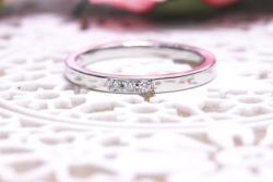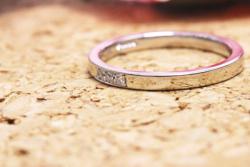 「平打ち」「メレダイヤは3つ寄せてセッティング」「幅は約2mm」