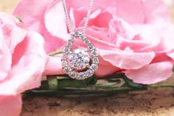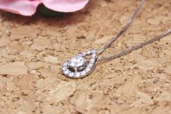 またせっかくの機会という事もあって、当店のダイヤモンドルース+枠のデザインをお選びいただき、涙型の取り巻きタイプのネックレスをお作りさせていただきました。