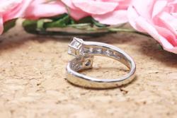ダイヤモンドの2つの大きさが違いますが、そのアンバランスさを活かせるようなデザインを数点ご提案をさせていただきました。