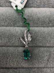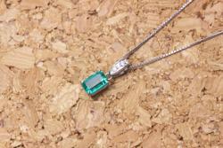 エメラルドのような角型タイプの石は、まず石を台座に乗せ、チェーンを通すバチカン部分のデザインをお選びいただくことをおススメしています。