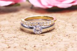 「ハーフエタニティーなどの指輪と重ねつけをしてもオシャレですよ」