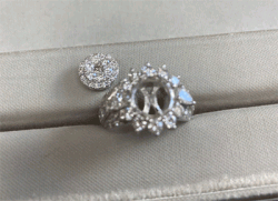 枠のサイズにあった宝石を何か留めることができないか?と思案させていただいた末に、メレダイヤで作られたペンダントトップをセッティングするアイデアをご提案させていただきました。