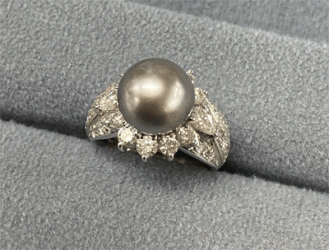婚約指輪としてもらったタヒチパール(黒蝶真珠とも呼びます)の指輪。