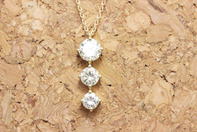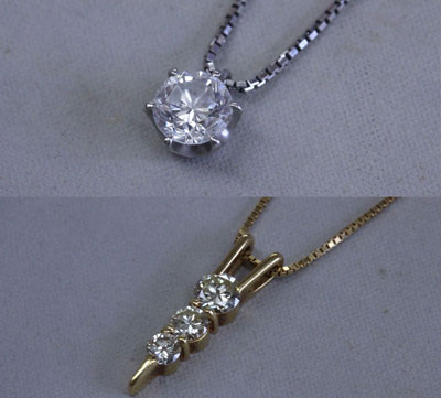 譲り受けた、2カラットのダイヤモンドのネックレスと、ダイヤが3つ並んだスリーストーンのネックレス。