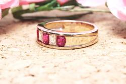ルビーが3pc入った少し奇抜なデザインの指輪。