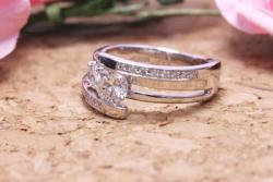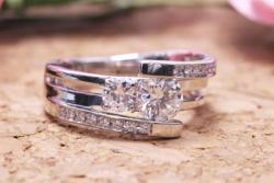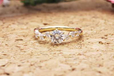 お客さまがお選びいただいたデザインは0.63ctに対応したものでしたので、そちらの枠を利用して、0.18ctのダイヤはアレンジで追加で取り付けさせていただきました。