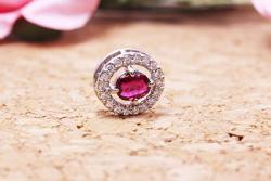 赤系の石がお好きだということで、別途、枠のサイズにあったルビーをご用意してご覧いただき、お作りさせて頂くことになりました。