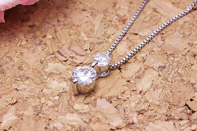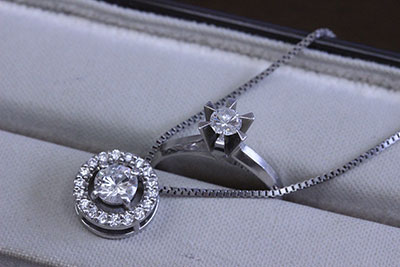 お持ちの立て爪タイプのダイヤ指輪と取り巻きタイプのダイヤネックレス。