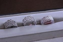 地金が詰まった無垢の幅広リングよりも、透かしのデザインの方が、地金の量も少なく、コストも抑えめにできるので、透かしタイプのファッションリングを3型ほどご用意させていただきました。