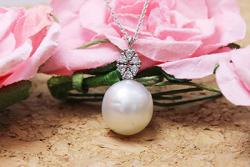 真珠の方は、真珠特有の「エクボ」のような凹みが見られて、チェーンを中に通すタイプになると、珠が回るのでエクボが正面から目立ってしまいます。