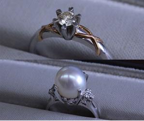 お祖母さんから譲り受けたダイヤモンドの指輪と真珠の指輪。