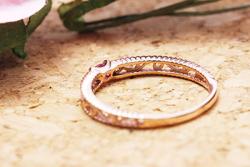 特にピンクゴールドが気になっておられたので、過去事例から「ルビーxピンクゴールド」でお作りした事例などを画像で送らせていただき参考にしていただきました。