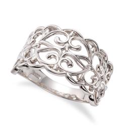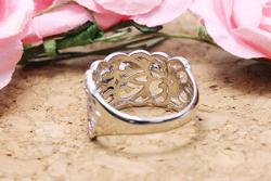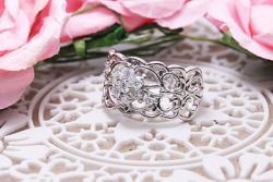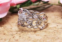 普段使いできるようなデザインがご希望だったので、幅広タイプの既成のデザイン枠に、中央部の花柄のパーツを少しアレンジしてそのままセッティングをする方法をご提案させていただきました。