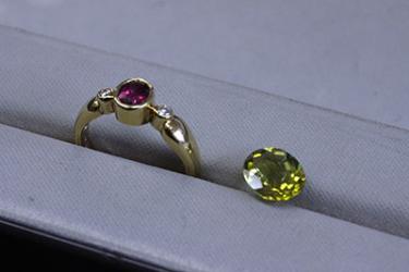そして、ルビーがなくなった部分に4本の爪で留めたカナリートルマリンのパーツをそのままセッティングさせていただきました。