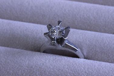 お母さんから譲り受けた1カラットの立て爪の指輪。