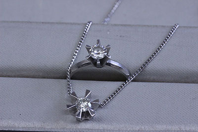 使わなくなった立て爪デザインの指輪とネックレス。