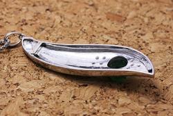 お母さんが使いたいというひすいのネクタイピンについては、石を外してデザインを変えてしまうのはもったいないので、裏側のタイピンのパーツのみを取り外して、チェーンを通すバチカンを新たに取り付けてネックレスにさせていただきました。