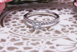ダイヤモンドの指輪のデザインは、メインのダイヤを1石だけ使ったデザイン、周囲にメレダイヤが使われているデザインなど多々あります。