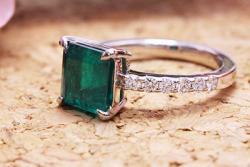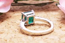 同じようなイメージで、エメラルドの指輪の両側に6pcづつを配置したデザインをご提案させていただきました。