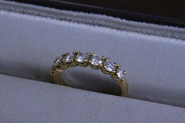 元々はダイヤ5pcの指輪だったそうですが、2pcを追加して7pc使いのイエローゴールドの指輪にリフォームした経緯があるそうです。
