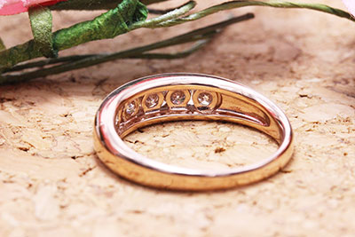 [ No.2018 ] 爪留めタイプのイエローゴールドの指輪をレール留めのピンクゴールドの指輪にリフォーム