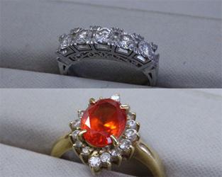 ・ プラチナ一文字ダイヤ指輪リフォーム ¥ 99,000・ オレンジサファイヤK18PGフクリンデザインリフォーム ¥ 110,000