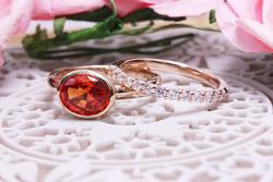オレンジサファイアは人気のフクリンタイプの指輪をピンクゴールドで。