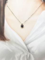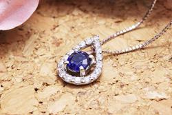 サファイアの形がラウンドでしたのでダイヤモンドの既成のペンダント枠を使ってお作りさせていただきました。