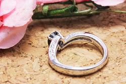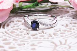サファイアはウェーブラインで、枠の側面にもメレダイヤがセッティングされたおしゃれなデザインをお選びいただきました。