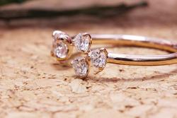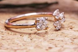 事例NO1629の説明で記載されていた3つと1つのフォークリングをイエローゴールドもしくはピンクゴールドの土台でと考えています。