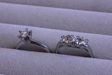 一つは、0.285ctの一粒ダイヤ、もう一つは3つのダイヤ計0.3ctの指輪です。