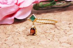 [ No.2048 ] エメラルド、ガーネットのパーツを使って可愛いチャームリングにリフォーム