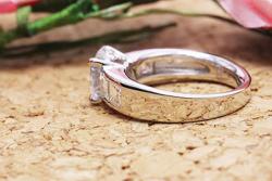 メインのダイヤモンドの1.5カラットの立派なものですので、指輪自体もボリューム感を出せるようにしっかりと地金を使った指輪に仕立てさせていただきました。